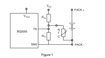 低故障,高故障和低故障時NTC周圍的電壓截止溫度必須符合閾值為BQ2005設(shè)計。這由等式表示(1a),(1b)和(1c)。