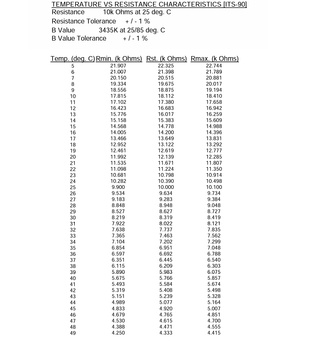 (圖為漆包線阻值與溫度對照表(RT表),每個電阻的RT都不一致 請點(diǎn)擊右側(cè)聯(lián)系我們獲取對應(yīng)的RT表)