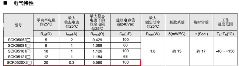 熱敏電阻型號: