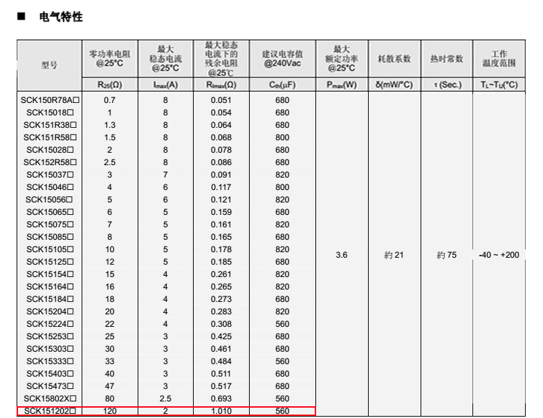 熱敏電阻型號(hào):