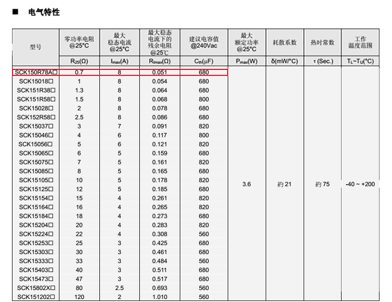 熱敏電阻: 穩(wěn)騰 熱敏電阻型號(hào): SCK151R38MSY 熱敏電阻片徑: Φ15mm 零功率電阻@25℃: 1.3Ω 工作溫度范圍: -40℃±200℃ 儲(chǔ)存溫度范圍: -40℃±85℃