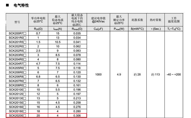 熱敏電阻: 穩(wěn)騰 熱敏電阻型號: SCK20200MSY 熱敏電阻片徑: Φ20mm 零功率電阻@25℃: 20Ω 工作溫度范圍: -40℃±200℃ 儲存溫度范圍: -40℃±85℃