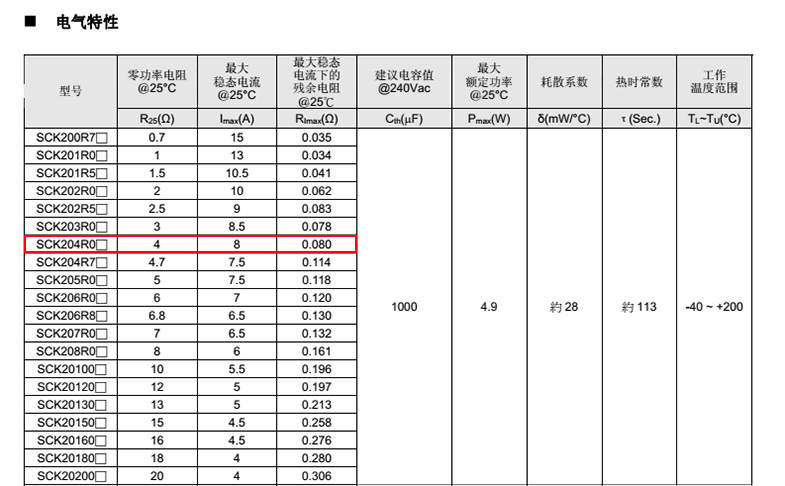 熱敏電阻: 穩(wěn)騰 熱敏電阻型號: SCK204R0MSBY 熱敏電阻片徑: Φ20mm 零功率電阻@25℃: 4Ω 工作溫度范圍: -40℃±200℃ 儲存溫度范圍: -40℃±85℃