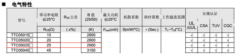 熱敏電阻型號(hào):