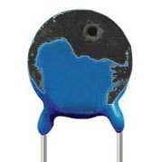 2.電阻穿孔:劣質(zhì)熱敏電阻芯片原材料銀漿純度不高,在打沖擊電流(Imax)時(shí),耐沖擊能力差,易發(fā)生熱敏電阻穿孔等現(xiàn)象發(fā)生。