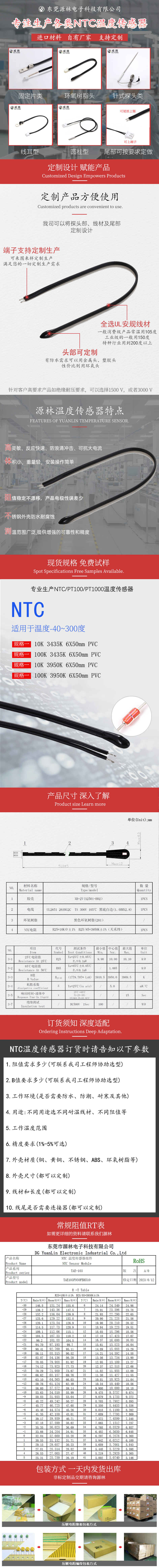 電池用漆包線溫度傳感器 阻值10KΩ B值3435