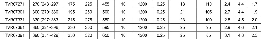壓敏電阻片徑: Φ7mm 標稱壓敏電壓(@1mADC): 270V(243~297)