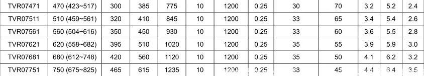 壓敏電阻: VT 壓敏電阻型號: TVR07511KSY